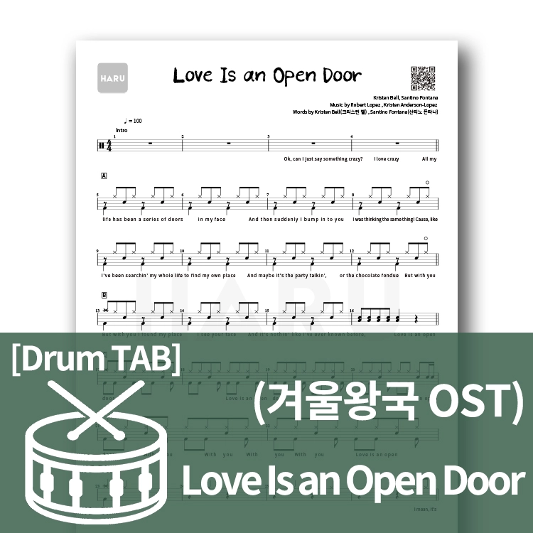 드럼)Kristen Bell, Santino Fontana - Love Is an Open Door(겨울왕국OST)
